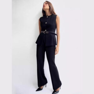 Stylish women’s casual sleeveless office suit with personalized belt 2820