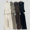 3628 Women’s 2025 Spring New Fashion Rattan Crepe Shirt with Retro Sleeveless Buttoned Casual Women’s Jacket Set