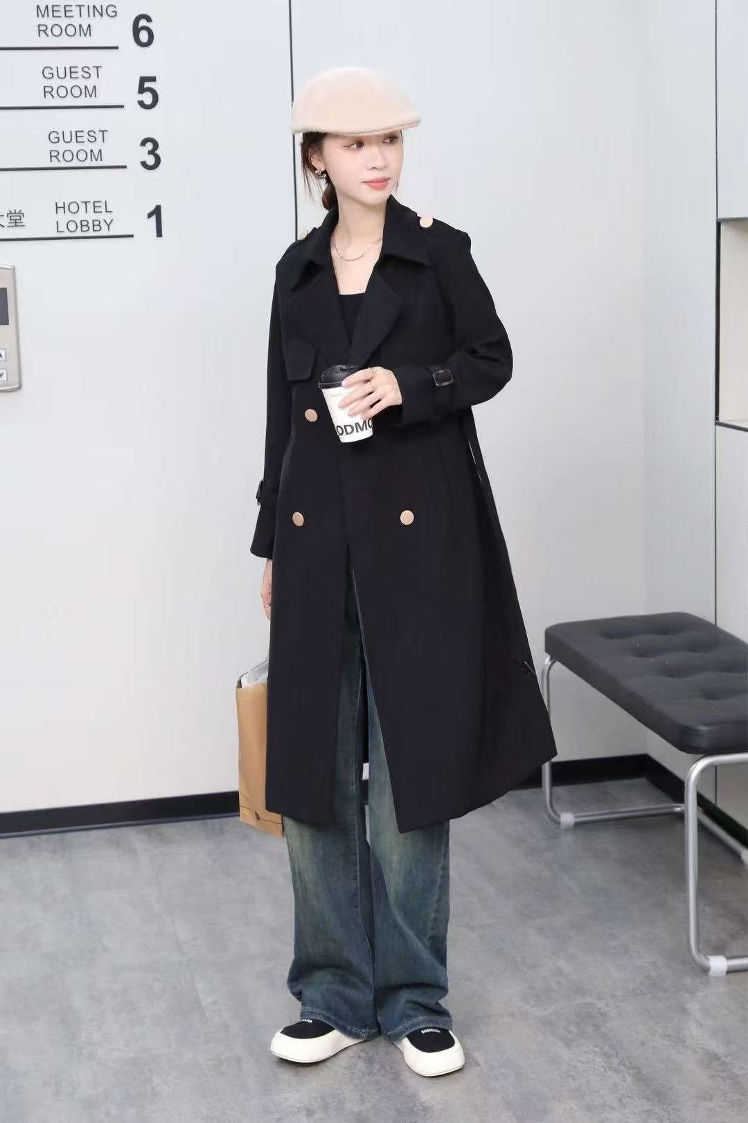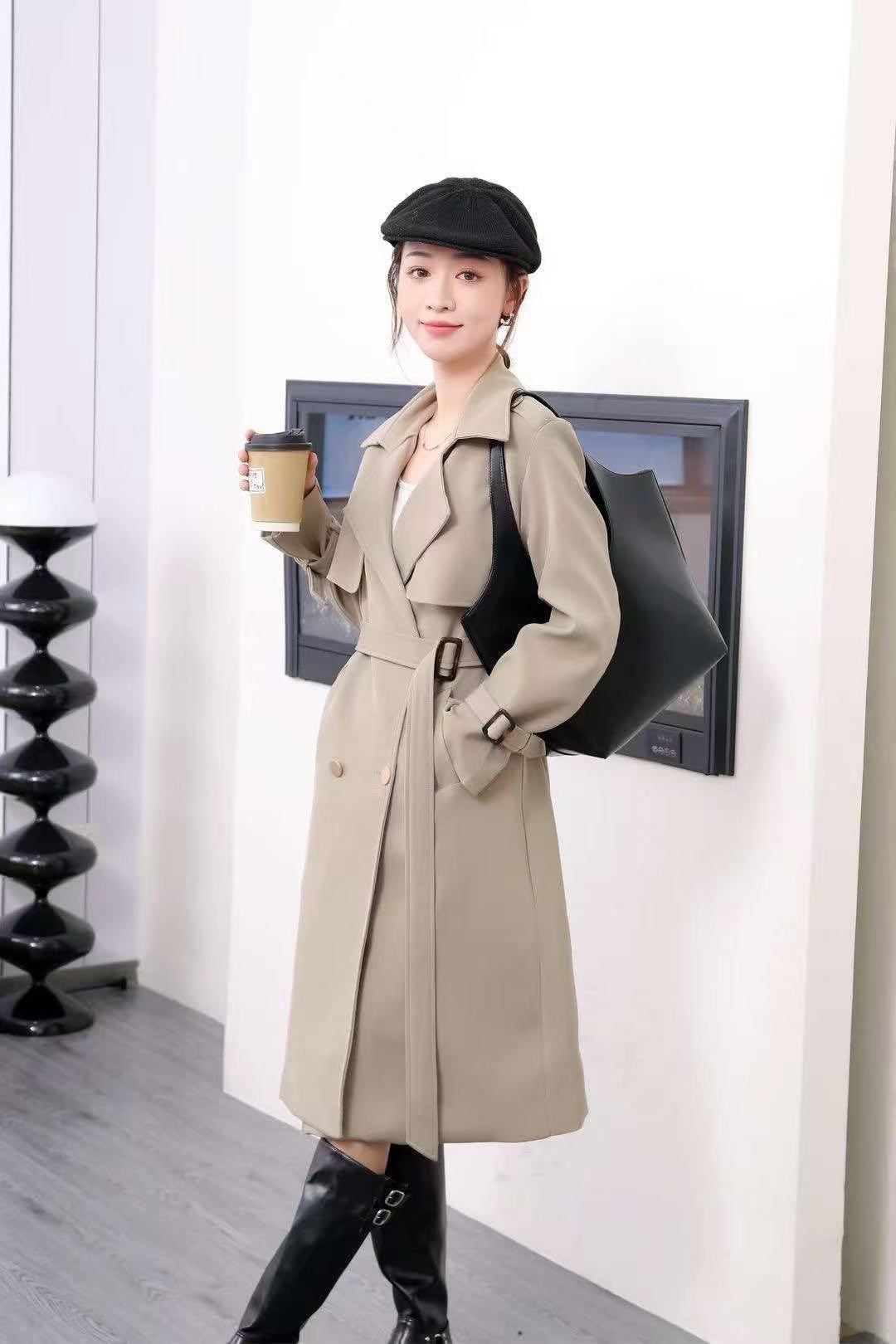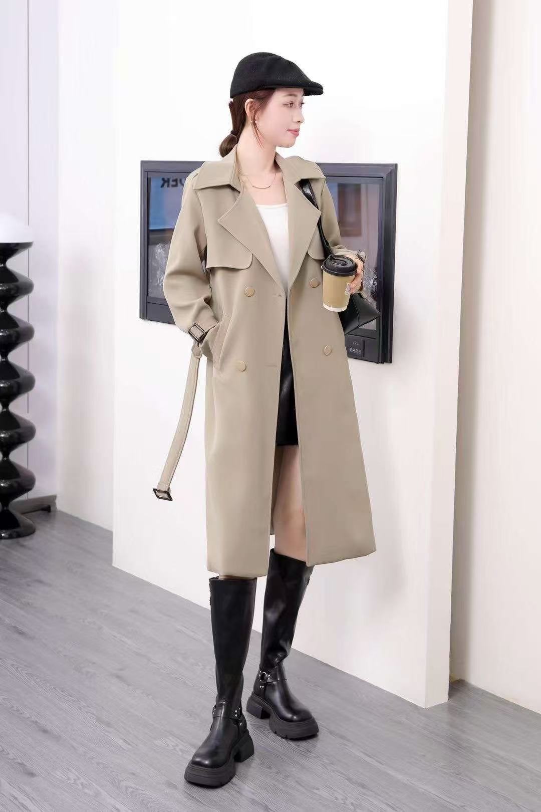 2379 High-quality minimalist style trench coat, double-breasted lapel, women’s mid-length outerwear