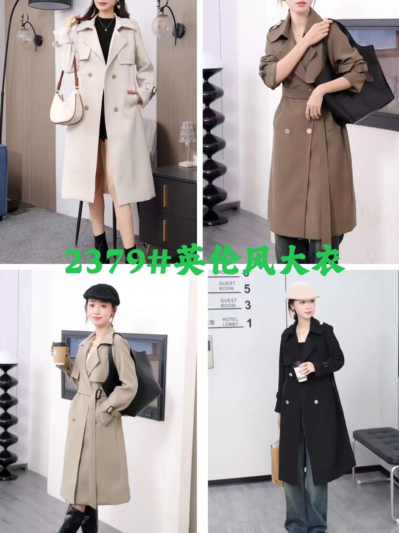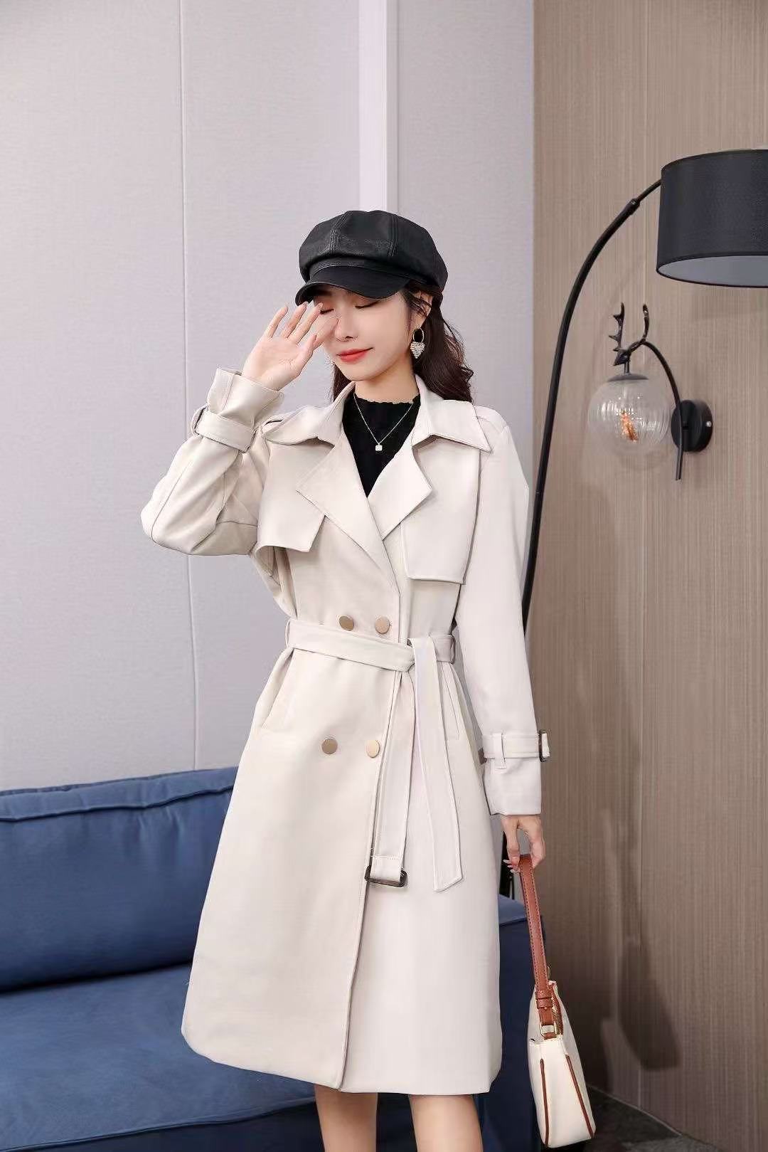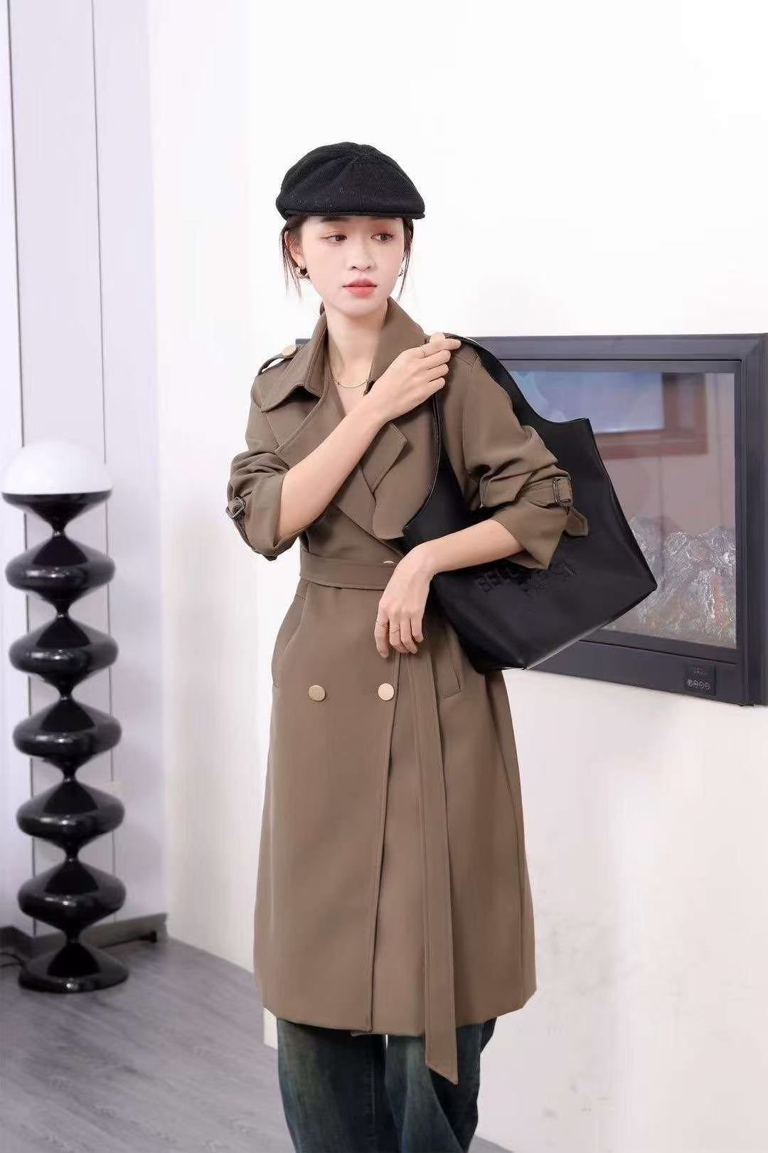2379 High-quality minimalist style trench coat, double-breasted lapel, women’s mid-length outerwear