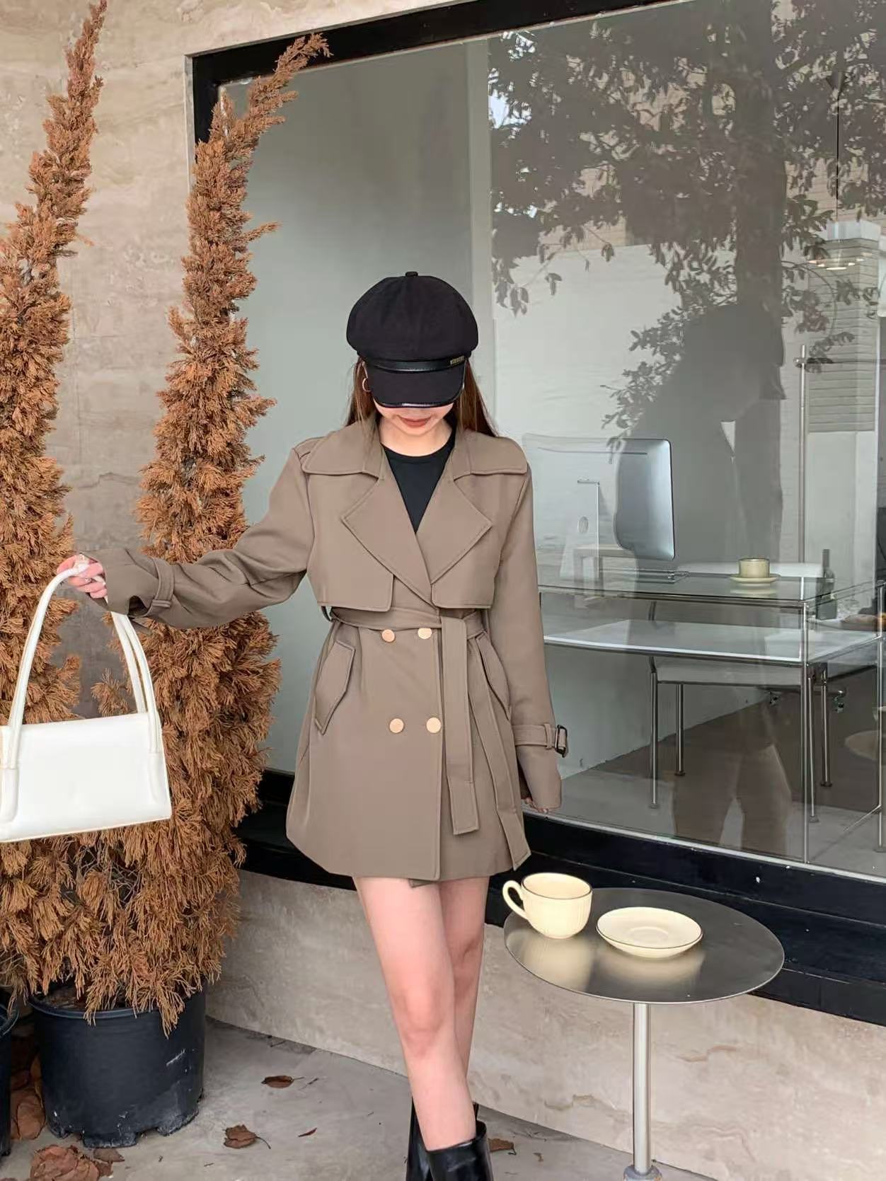 2380 Customized women’s fashionable windbreaker with elegant buttons Women’s casual jacket with stylish zipper closure