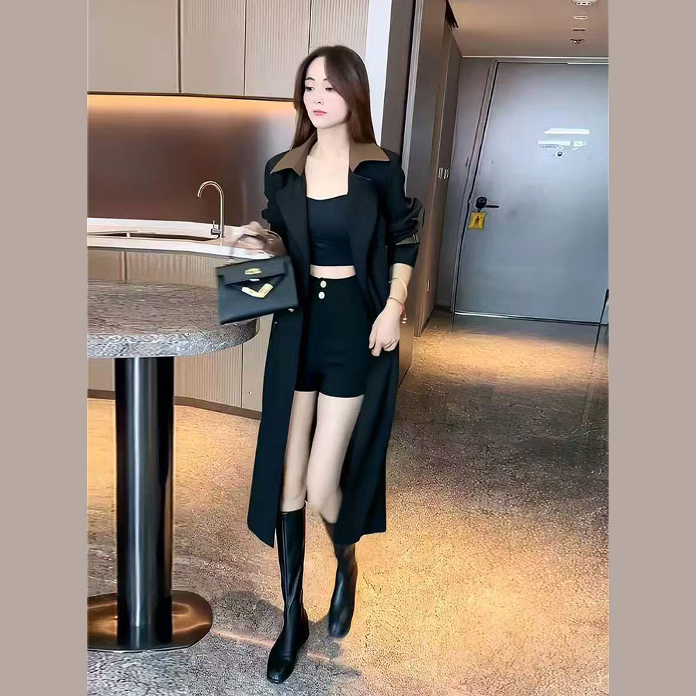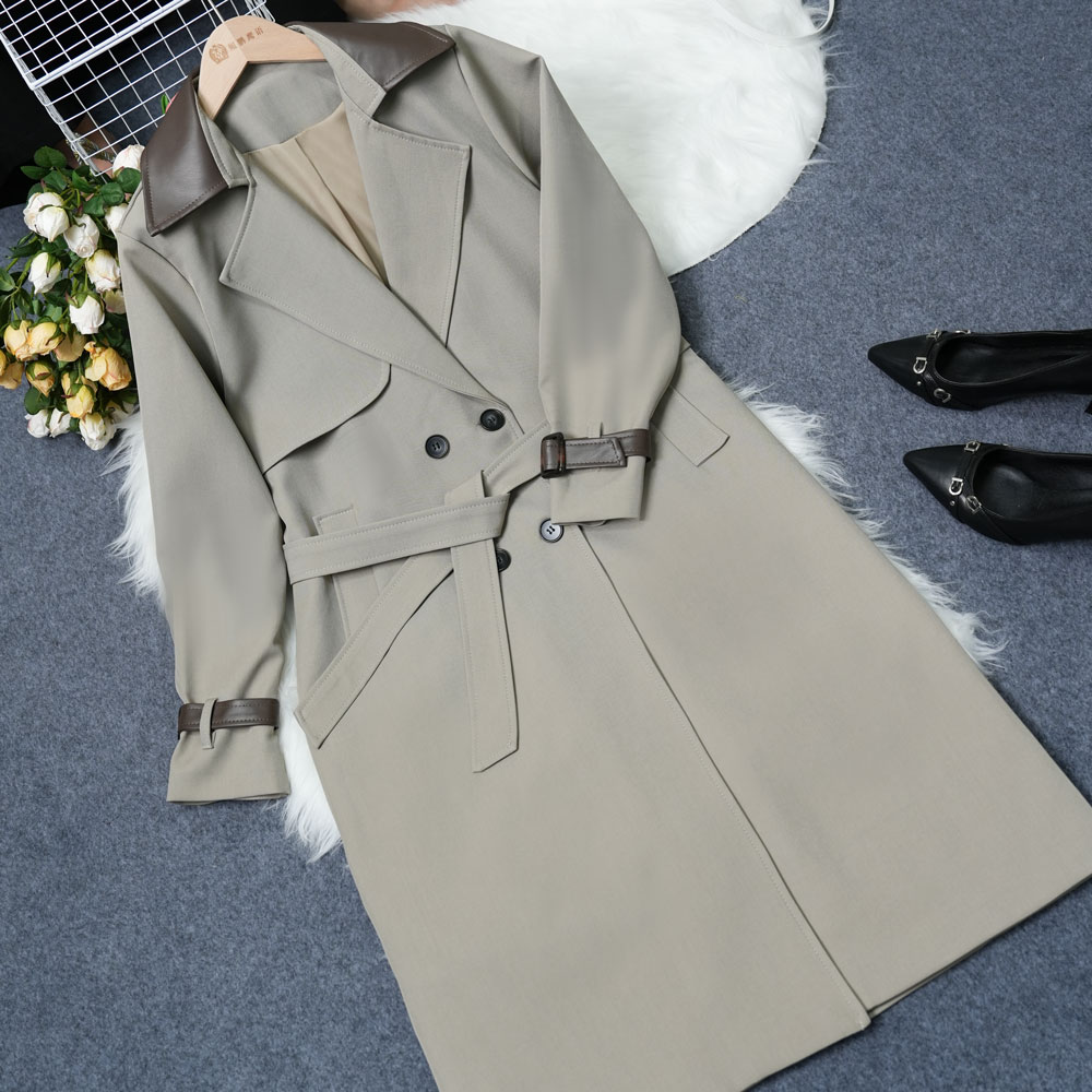 2827 2025 Spring/Summer New Style Elegant Casual Mid-Length Windbreaker with Long Sleeves and Buttons Women’s Coat