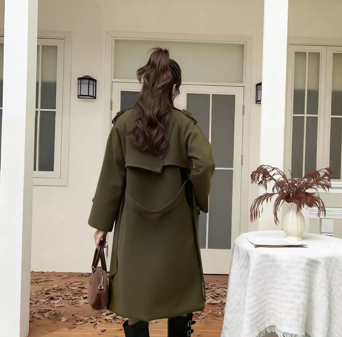 2286 2025 New Style Fashion Women’s Elegant Casual Mid-Length Coat with Long Sleeves and Buttons Women’s Overcoat
