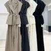 5703 Customized women’s two-piece fabric belt, sleeveless blouse and pants, paired with comfortable lining