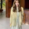2288-1 Spring/Summer women’s fashionable dress shirt with a turned-down collar and slits, new women’s solid-fit casual jacket