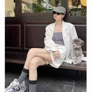 5661 Office Lady V-neck Solid-color tank Top Sleeveless Fashionable Set – Elegant Women’s Short Two-piece Set