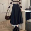 5712 Waist-belted MIDI-style A-line skirt, high-waisted skirt, fashionable pleated skirt