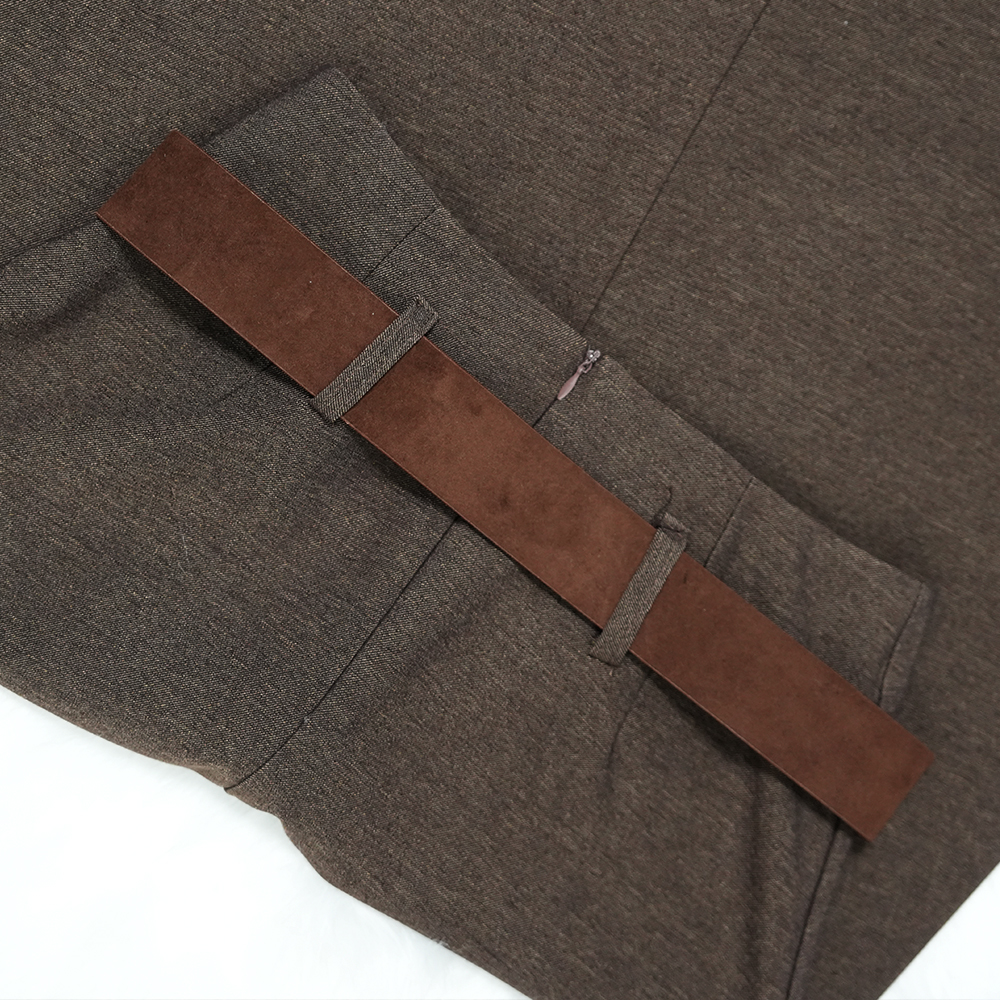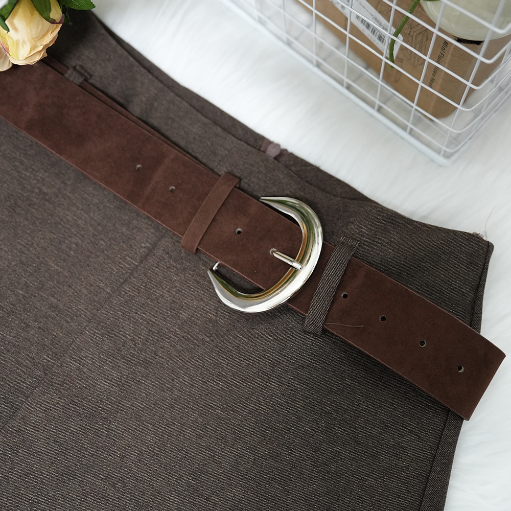 5697 French Elegant Women’s A-line Skirt with Belt – Stylish Fall and Winter Casual Plain Skirt