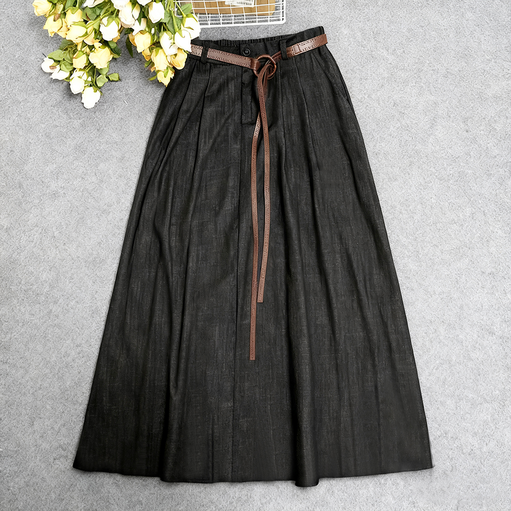 5698 Fashion Retro Spring Line Long Dress Ankle-length Denim Skirt with Belt