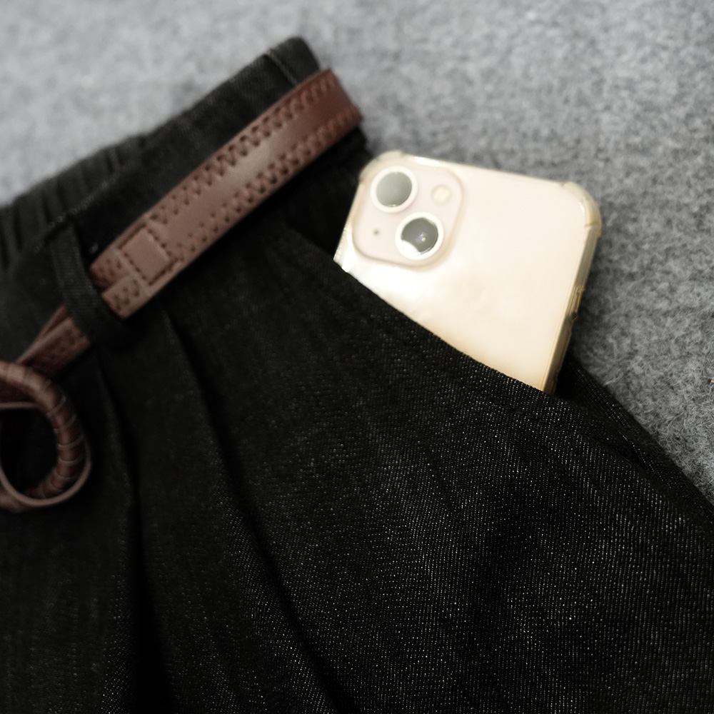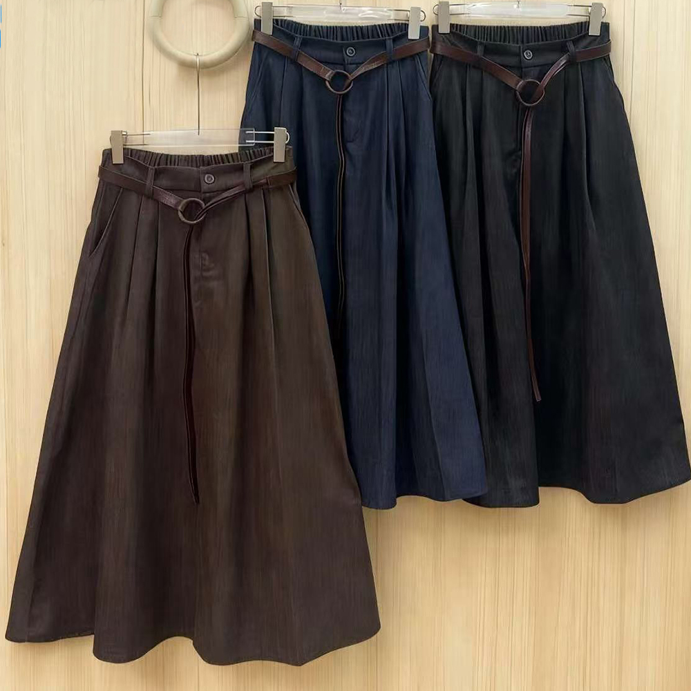 5712 Waist-belted MIDI-style A-line skirt, high-waisted skirt, fashionable pleated skirt