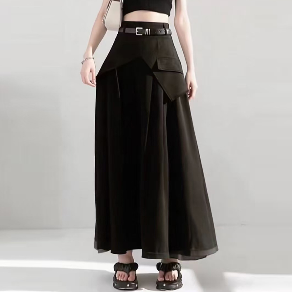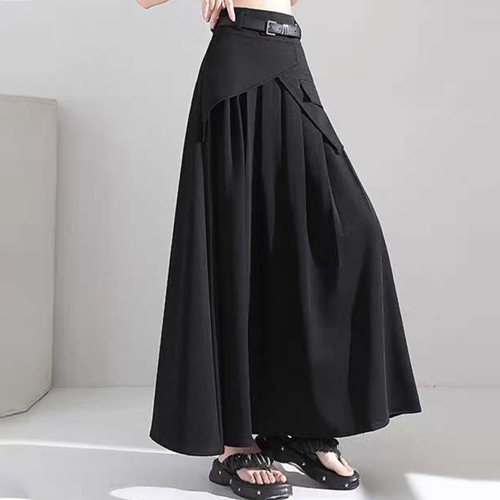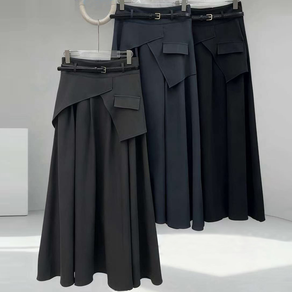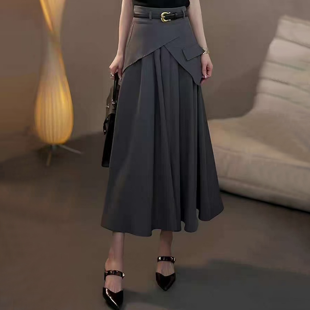 5712 Waist-belted MIDI-style A-line skirt, high-waisted skirt, fashionable pleated skirt