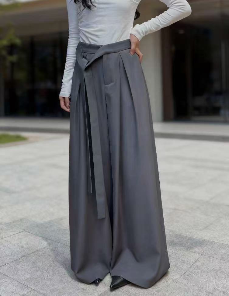 5711 Sexy wide-leg high-waisted lace-up women’s dress pants for office casual wear