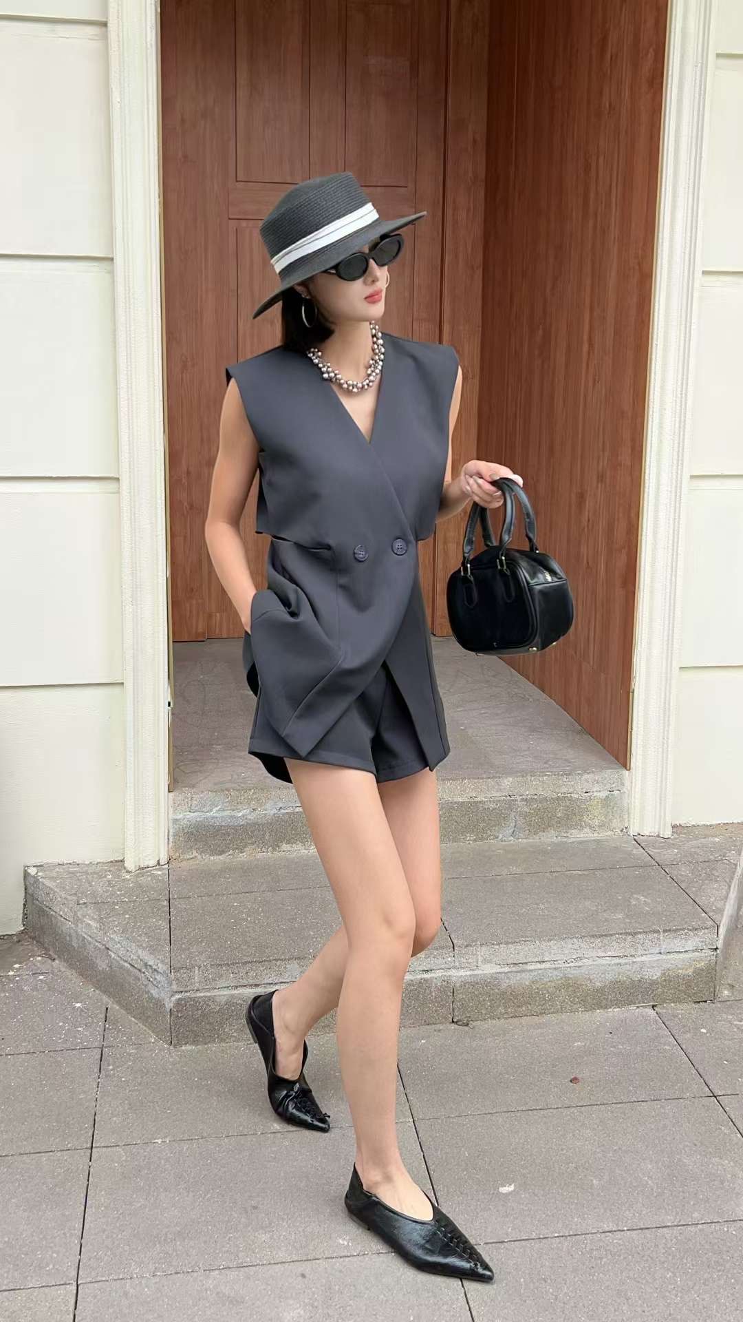 A waist-cinching waistcoat paired with shorts5576 quantity