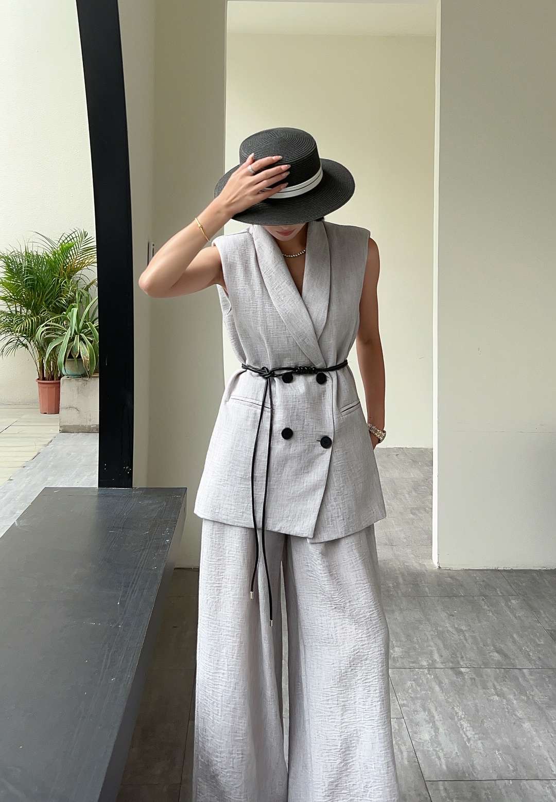 Casual two-piece set with a waistcoat5631