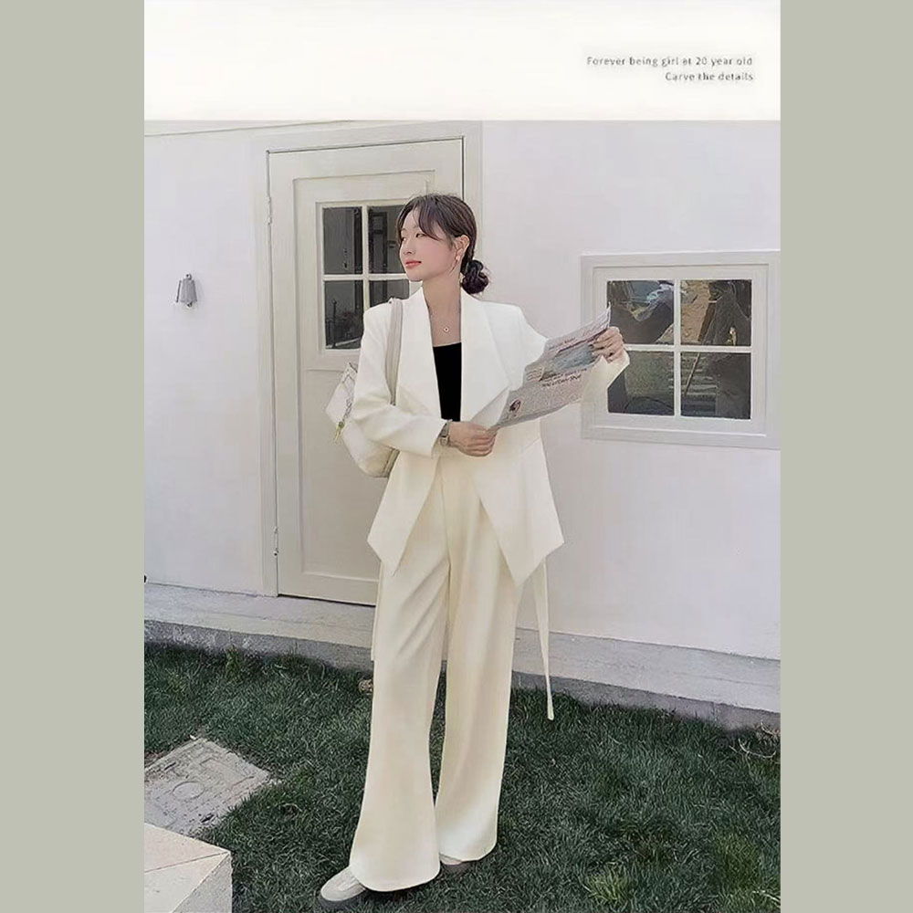 Custom two-piece women’s suits include a jacket with a belt and pants 5666