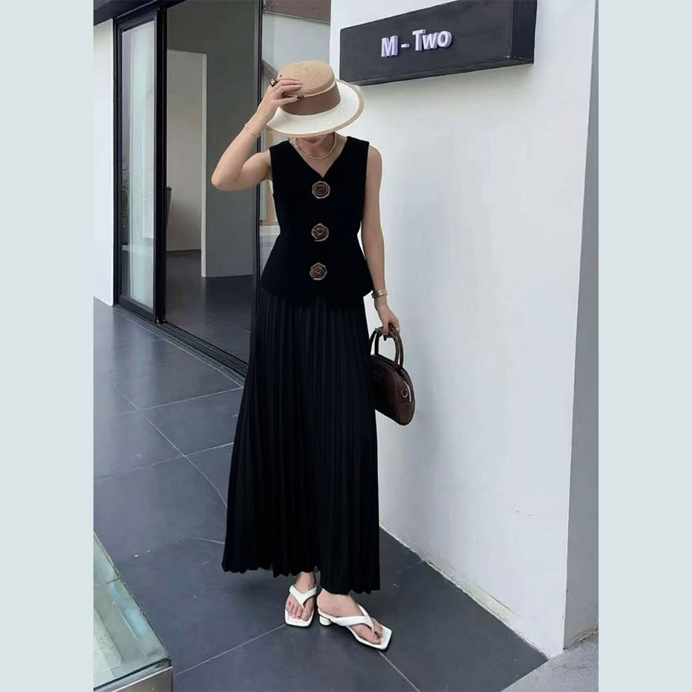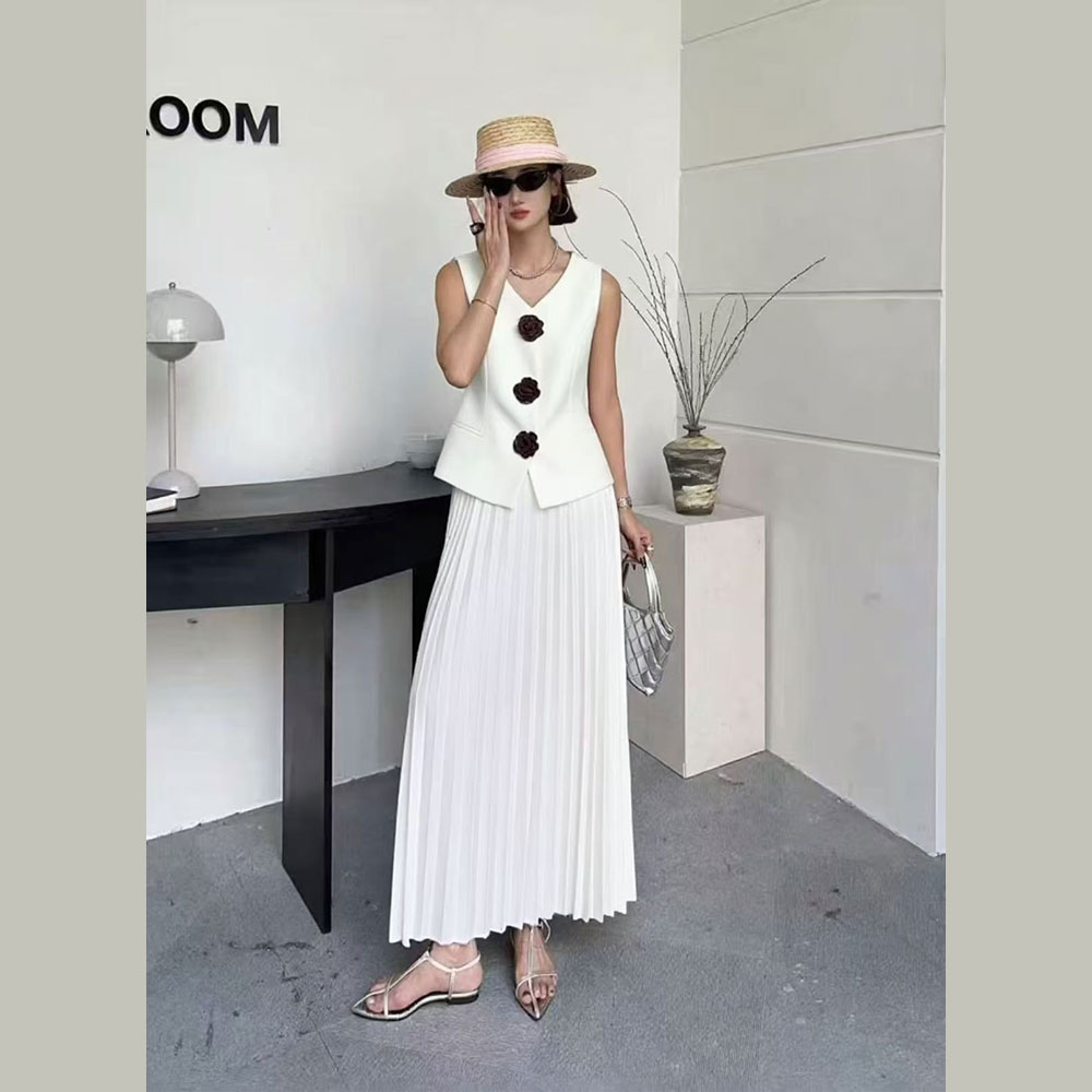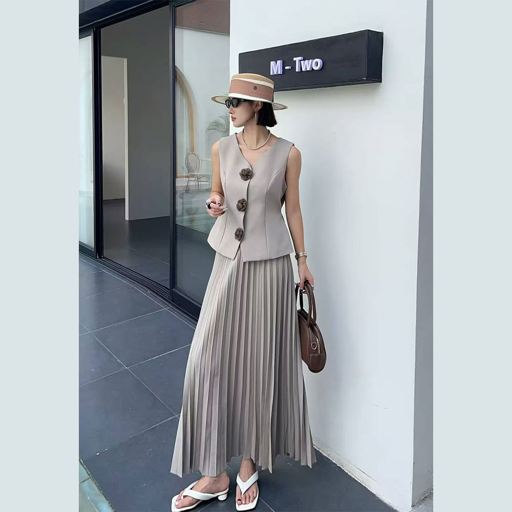 Fashionable Women’s two-piece suit fabric, chic vest and pleated skirt, versatile 5652