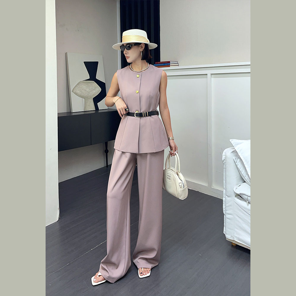 Women’s two-piece suit fabric fashionable sleeveless jacket and pants 5680