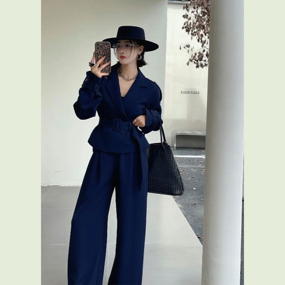 Women’s Trench Two-Piece Premium Suit Fabric Suit With belt 5679