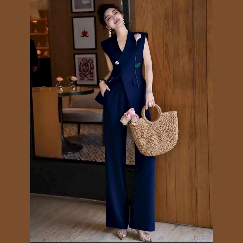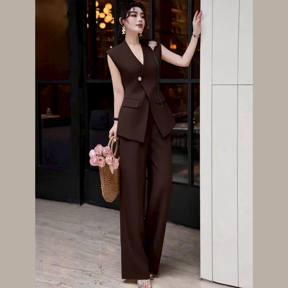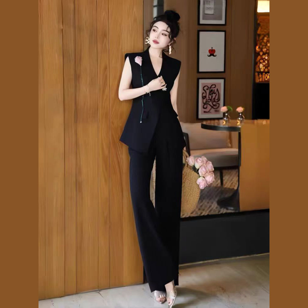 Women’s two-piece suit fabric fashionable sleeveless jacket and pants 5680