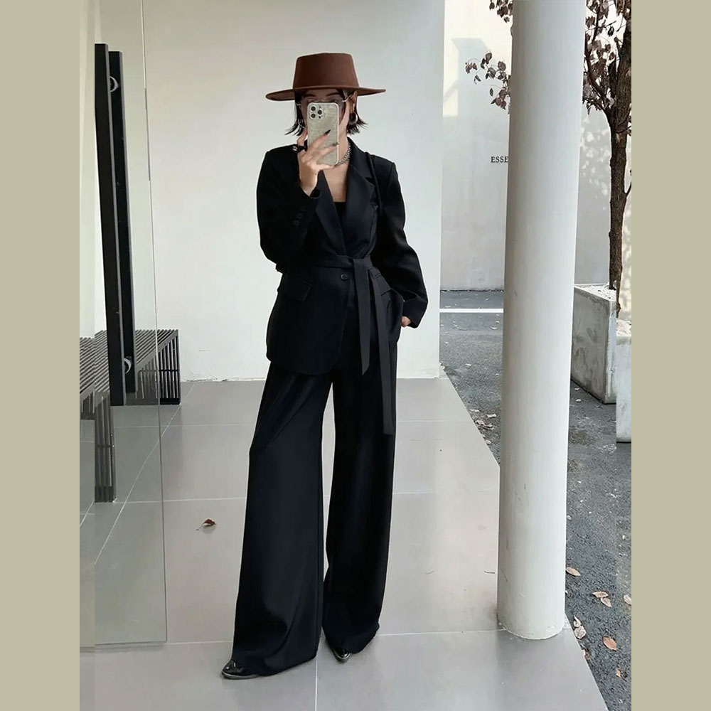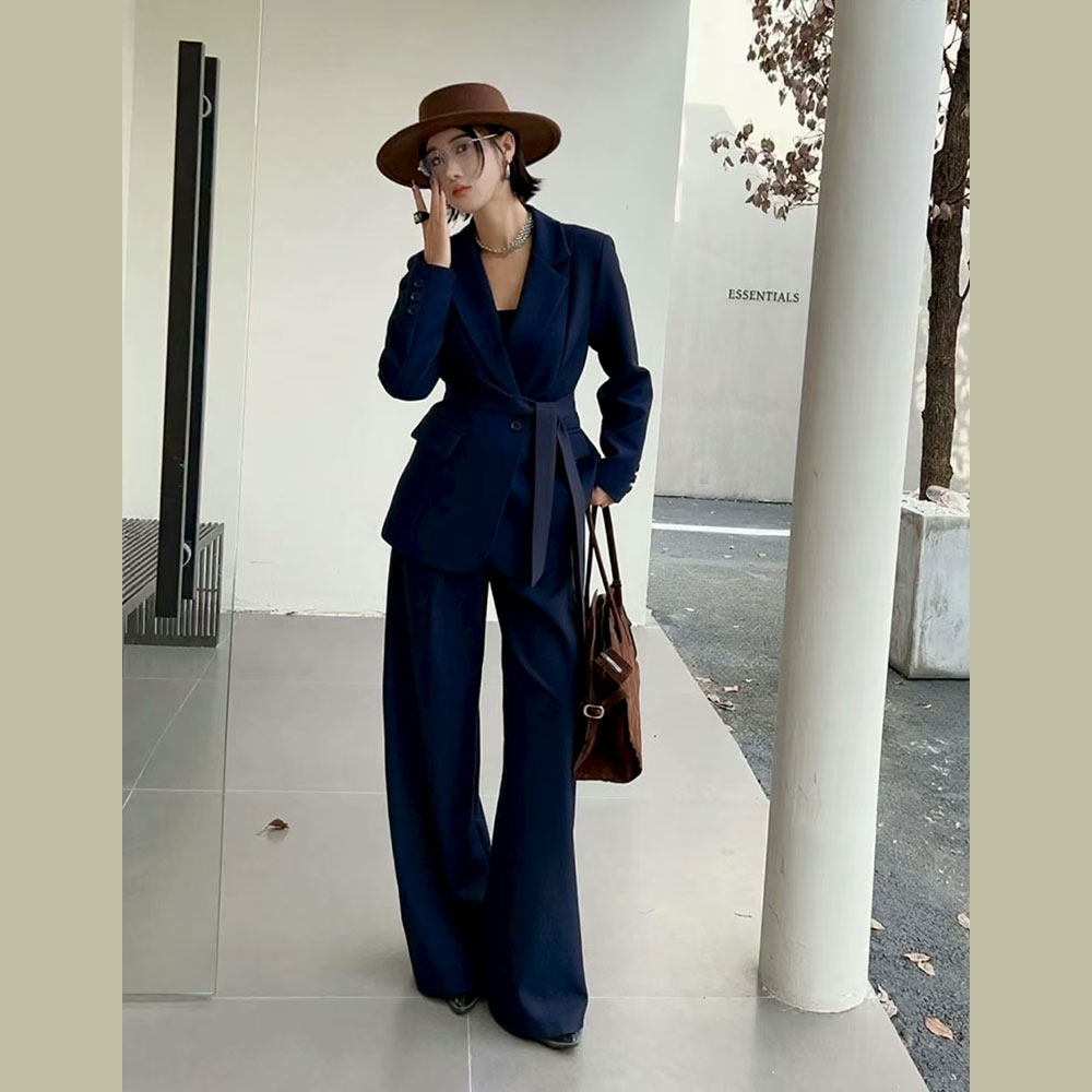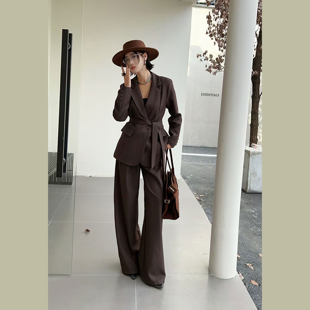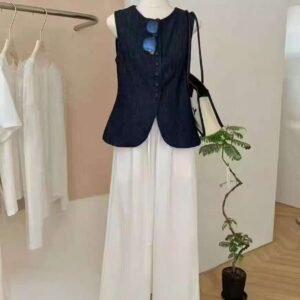 Women’s two-piece suit fabric, chic sleeveless jacket with a waistband 5655