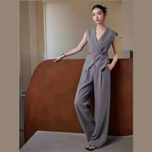 Women’s two-piece suit fabric fashionable sleeveless jacket and pants 5680 (复制)