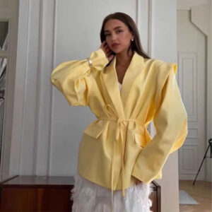 Women’s two-piece suit fabric, chic sleeveless jacket with a waistband 5655